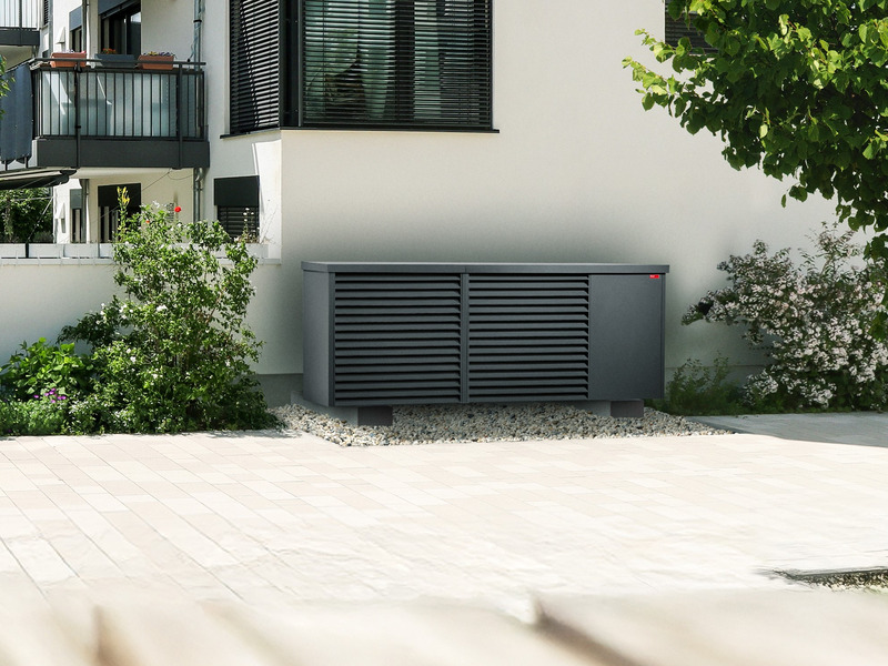 Въздушно-водните термопомпи Belaria pro (40,50) от Hoval предлагат всичко необходимо за устойчиво и надеждно отопление в многоетажни жилищни сгради: естествен хладилен агент, висока температура на подаване и тиха, икономична работа.