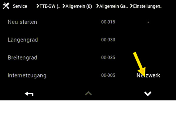In der Linie Internetzugang klicken Sie auf den Parameter rechts (zeigt beliebigen Text an).